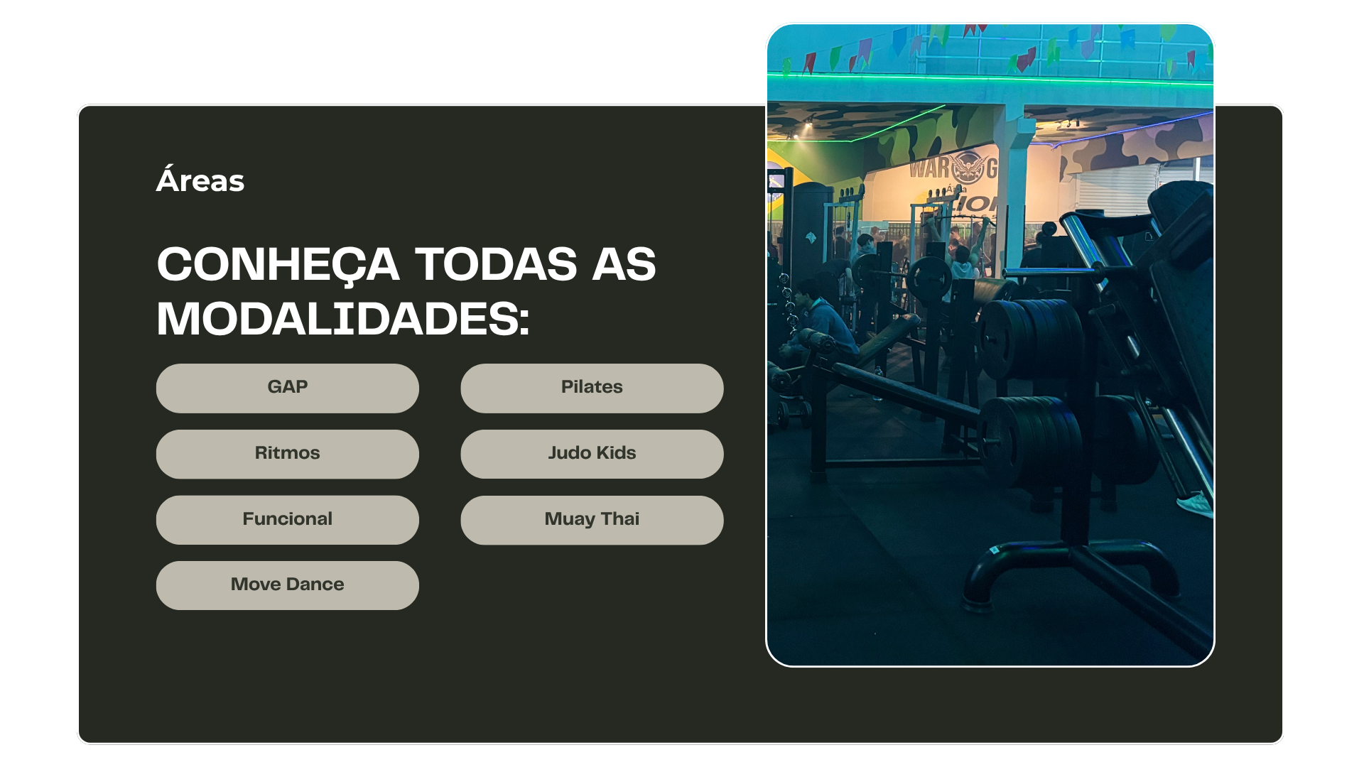 A War Gym oferece mais do que equipamentos modernos e espaços otimizados. Nossos diferenciais incluem: